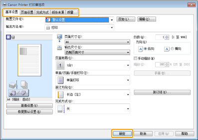 [基本设置]选项卡中仅包含驱动程序的一些基本设置。可以在[基本设置]选项卡中配置的设置也可以在其他选项卡中配置。