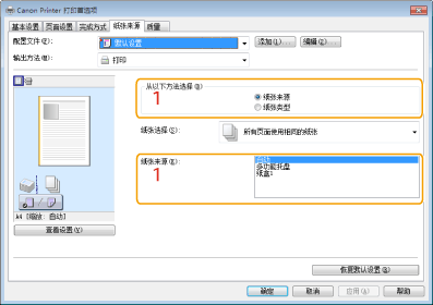 在[纸张来源]选项卡中,可以执行以下操作。