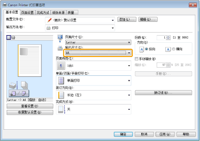 从[页面尺寸]选择在应用程序中所创建文档的页面尺寸。