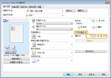 根据在[页面尺寸]和[输出尺寸]中所做的设置自动缩放文档。