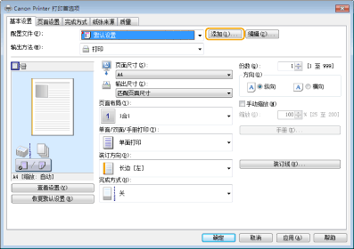 在打印机驱动程序屏幕中指定所需的设置 -> 单击[添加]。