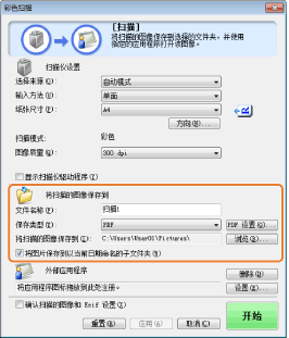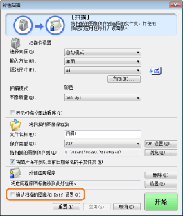 选中[确认扫描的图像和 Exif 设置](对于 [PDF] 按钮为[确认扫描的图像])复选框。