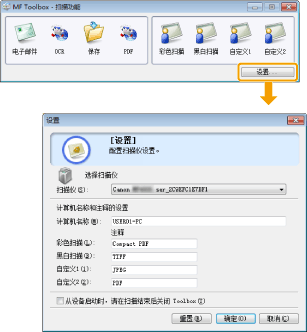 如果选择了该复选框,当使用操作面板上的按键进行扫描结束时,MF Toolbox 屏幕关闭。
