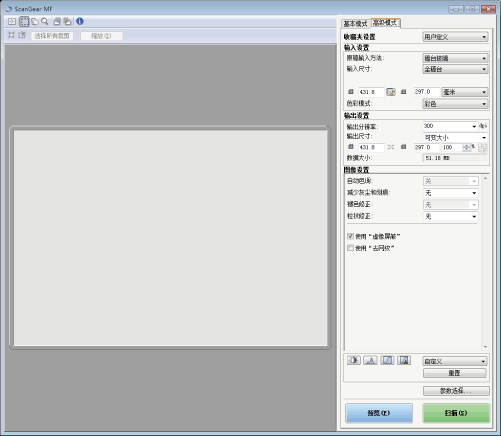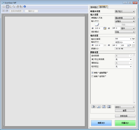 打开 ScanGear MF 时,预览自动启动。 [显示保存的预览图像]