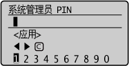 ] 或 [ ] 输入系统管理员 PIN,然后按 [OK]。按 <应用> 显示确认屏幕,再次输入 PIN,然后按 <应用>。