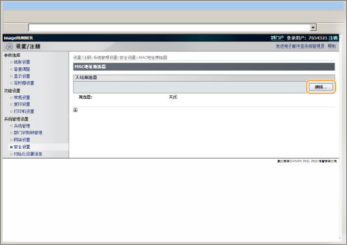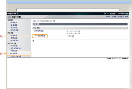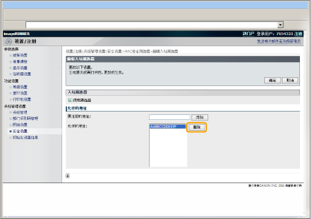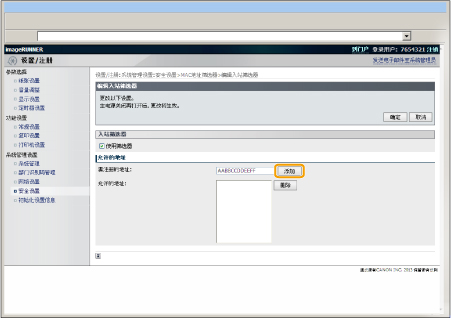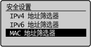 ] 选择 <MAC地址筛选器>,然后按 [OK]。
