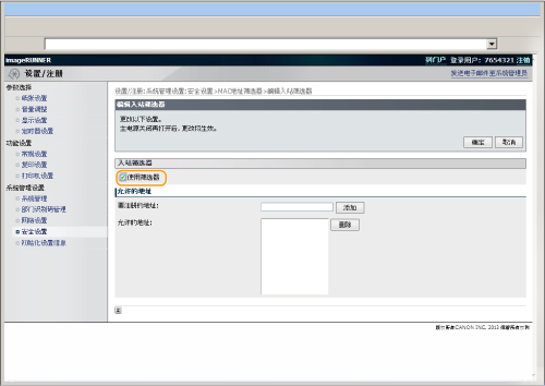 ] 选择 <入站筛选器>,然后按 [OK]。