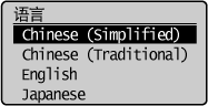 ] 选择 <语言> 或 <远程用户界面语言>,然后按 [OK]。