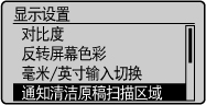 显示清洁原稿扫描区域的信息。