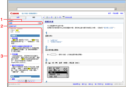显示关键字的搜索结果。 如果搜索结果超过 10 项,可以通过单击位于结果下方的[上一页]、[下一页]或数字查看其他结果。 |