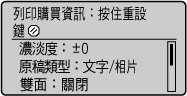 本機中僅剩少量碳粉時,「影印」模式畫面或「掃描」模式畫面上會出現訊息。