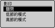 ] 反白 <關閉>、<低節約模式> 或 <高節約模式>,然後按 [OK]。