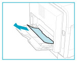 若多用途紙盤內發生夾紙,請遵循下列步驟取出夾住的紙張。