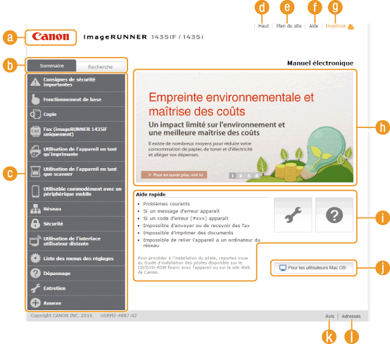 Cliquez ici pour afficher les informations indiquant comment feuilleter le Manuel électronique, effectuer une recherche et obtenir d'autres renseignements.