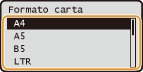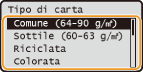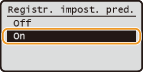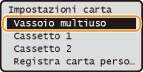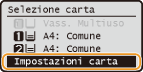 Dopo aver registrato l'impostazione predefinita per la carta, la schermata dell'impostazione non viene visualizzata quando si carica la carta, e viene utilizzata sempre la stessa impostazione. Se si carica carta di formato o tipo diverso senza modificare le impostazioni, la macchina potrebbe non stampare correttamente. Per evitare questo problema, disabilitare l'impostazione predefinita selezionando <Off> al passo 3, quindi caricare la carta.