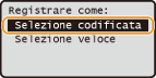 per selezionare il numero o indirizzo da registrare, quindi premere