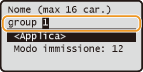 Immettere il nome del gruppo utilizzando i tasti numerici, selezionare <Applica>, quindi premere