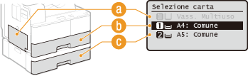 È necessario innanzi tutto specificare il formato e il tipo di carta caricato nell'origine della carta.