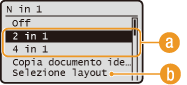 , ma i bordi del documento potrebbero non venire copiati in caso di aumento.<2 in 1>/<4 in 1> non è disponibile quando si utilizza <Cancellazione bordi> o <Copia documento identità>.