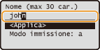 Se viene visualizzata la schermata di autenticazione quando si avvia la ricerca, immettere nome utente e password registrati nel server LDAP, selezionare <Applica> e premere . È possibile specificare nome utente e password della macchina o dell'utente, in base all'impostazione (Registrazione server LDAP). In caso di dubbio, chiedere all'amministratore di rete.