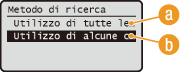 Selezionare il metodo di ricerca, quindi premere .