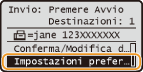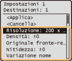 <Impostazioni preferite> <Registr./Elimina> selezionare l'impostazione modificare l'impostazione <Applica> <Sì> . Non è possibile modificare le destinazioni registrate nell'impostazione con questa procedura. Registrare una nuova impostazione con le destinazioni desiderate.Se si desidera eliminare un'impostazione registrata, premere