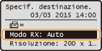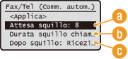 È possibile impostare la macchina per ricevere automaticamente i fax quando una chiamata in arrivo squilla per un intervallo di tempo specificato. Commutazione su RX automatica