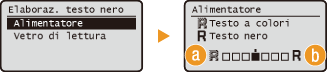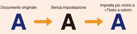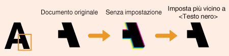Quando si acquisiscono documenti a colori, è possibile regolare il colore del testo nero o nerastro in modo che corrisponda meglio al documento originale, oppure è possibile regolare la nitidezza del testo nero per facilitarne la lettura. È possibile effettuare impostazioni separate per alimentatore e piano in vetro.
