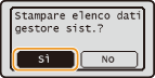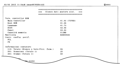 Impostazione dell'elenco menu) e le impostazioni correnti registrate nella macchina, ad esempio tipo e formato carta. È inoltre possibile controllare le informazioni di impostazione per <Impostazioni rete> e <Impostazioni gestione sistema> non inclusi nell'Elenco dati utente (