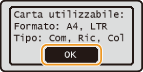 Verificare che formato e tipo di carta visualizzati sullo schermo siano caricati nella macchina, quindi premere