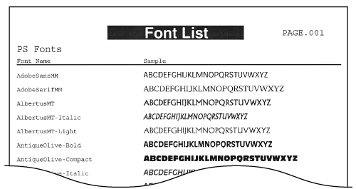 È possibile stampare un elenco per controllare i font disponibili nel modo PS.