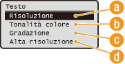 Le impostazioni specificate per <Densità> sono disabilitate quando <Risparmio toner> è abilitato.