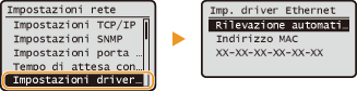 La connessione della macchina ad un bridge o hub di commutazione può non riuscire anche se l'indirizzo IP è configurato correttamente. Questo problema può essere risolto impostando un intervallo prima che la macchina inizi la comunicazione. Impostazione di un tempo di attesa per la connessione a una rete