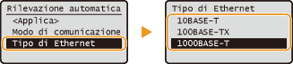 selezionare <10BASE-T> , <100BASE-TX> o <1000BASE-T> .![]() |