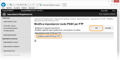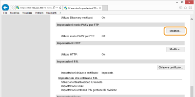Fare clic su [Modifica...] in [Impostazioni modo PASV per FTP].