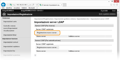 Fare clic su [Registrazione nuovo server...] in [Server LDAP (Per ricerca)].