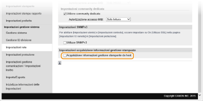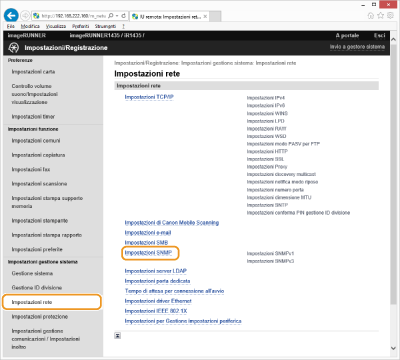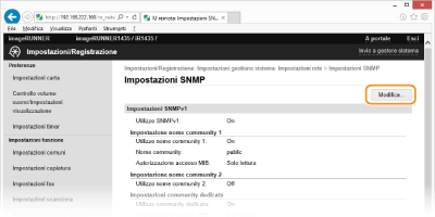 Quando non si utilizza SNMPv1Se entrambe le versioni di SNMP sono disabilitate, alcune funzioni della macchina non saranno disponibili, come il conseguimento di informazioni sulla macchina tramite il driver di stampa.