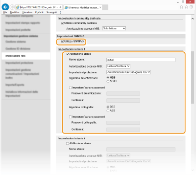 Selezionare la casella di controllo [Utilizzo SNMPv3].