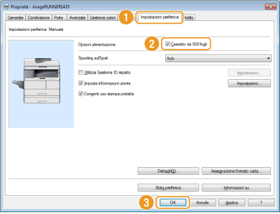 Selezionare la casella di controllo [Cassetto da 500 fogli]