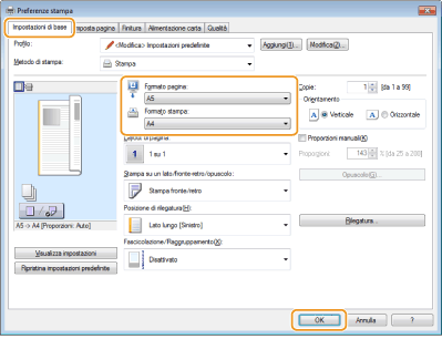 Selezionare il formato del foglio in [Formato stampa]