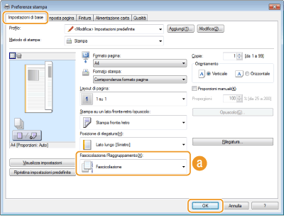 Selezionare [Fascicolazione] o [Raggruppamento] in [Fascicolazione/Raggruppamento]