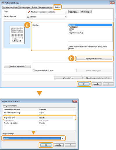 È possibile impostare il driver stampante in modo da stampare i documenti utilizzando una minore quantità di toner.