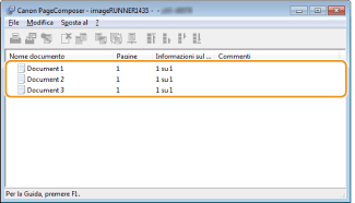 I documenti vengono aggiunti a Canon PageComposer.