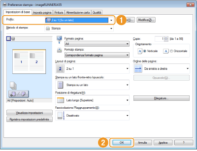 Selezionare il profilo che corrisponde alle proprie esigenze e fare clic su [OK].