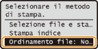 Quando si seleziona <Data/Ora (Crescente)> o <Data/Ora (Decrescente)>, i file vengono ordinati in base a date e ora di modifica dei file.