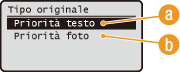 per selezionare <Priorità foto> o <Priorità testo>, quindi premere