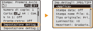 Per specificare le impostazioni di stampa solo per i file JPEG/TIFF