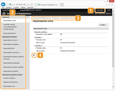 È possibile specificare le impostazioni in [Impostazioni gestione sistema] solo dopo aver effettuato l'accesso in modalità Gestore sistema.