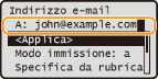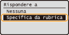Selezionare un indirizzo di risposta dalla Rubrica, quindi premere