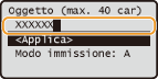 Immettere l'oggetto utilizzando i tasti numerici, selezionare <Applica>, quindi premere